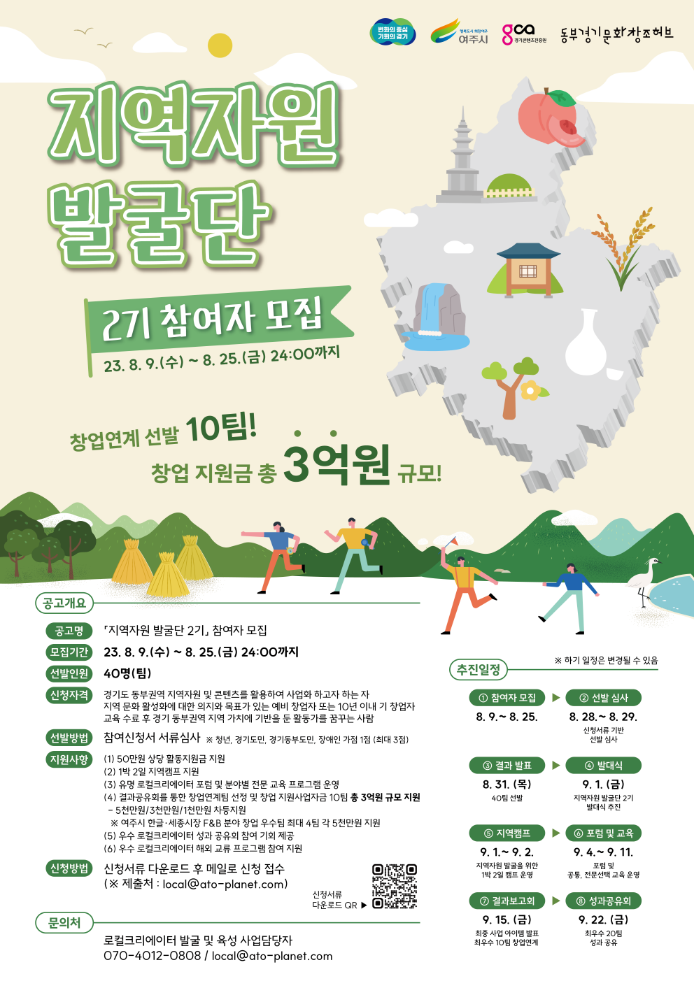 - 경기도 동부권역 지역자원 및 콘텐츠를 활용한 사업화를 하고자 하며, 지역 문화 활성화에 대한 의지와 목표가 있는 예비 창업자 또는 10년 이내 기 창업자