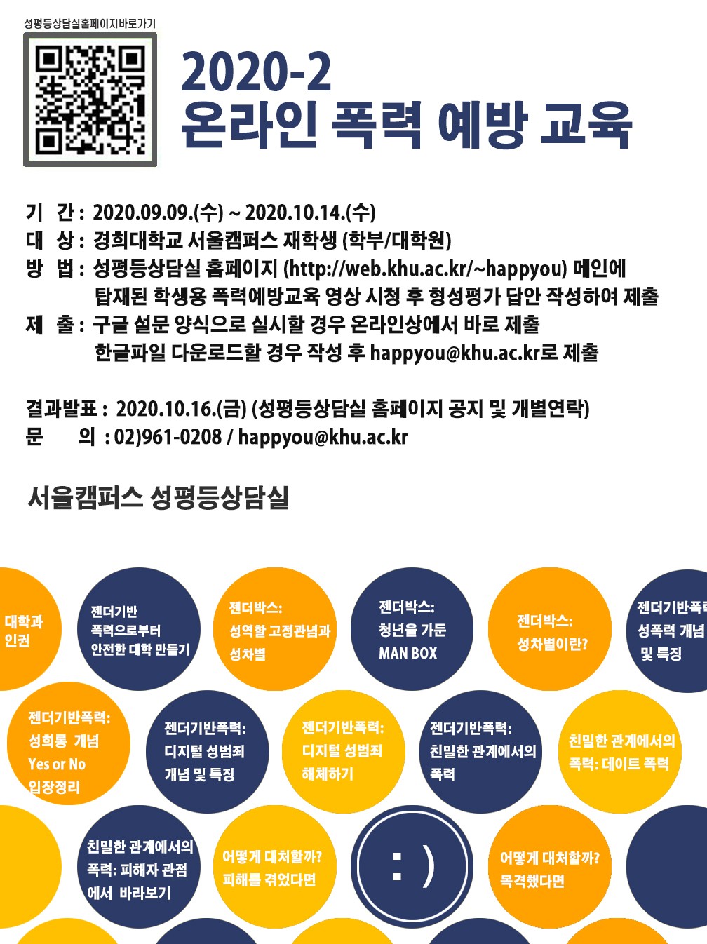 가. 목적: 폭력예방교육을 활성화하고 성 평등 인식을 함양하여 재학생 전 구성원이 안전하고 상호 존중하는 분위기에서 학습하고 생활할 수 있는 학내 분위기를 조성하고자 함