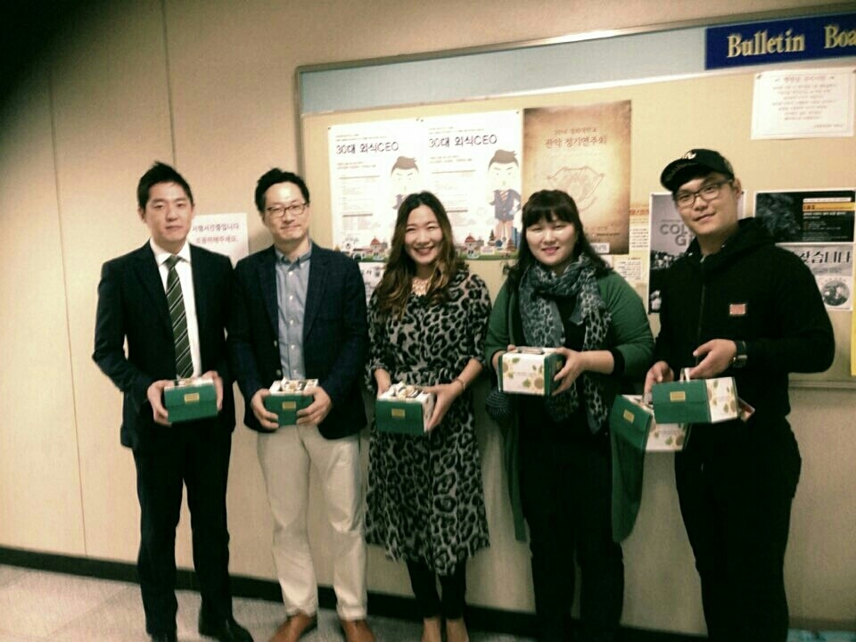 제가 회장 재임을 하면서 부터 추가사항으로 새롭게 도입한 티라미슈 케잌을 준비하여 한 분 한 분께 직접 전달 해드렸습니다.